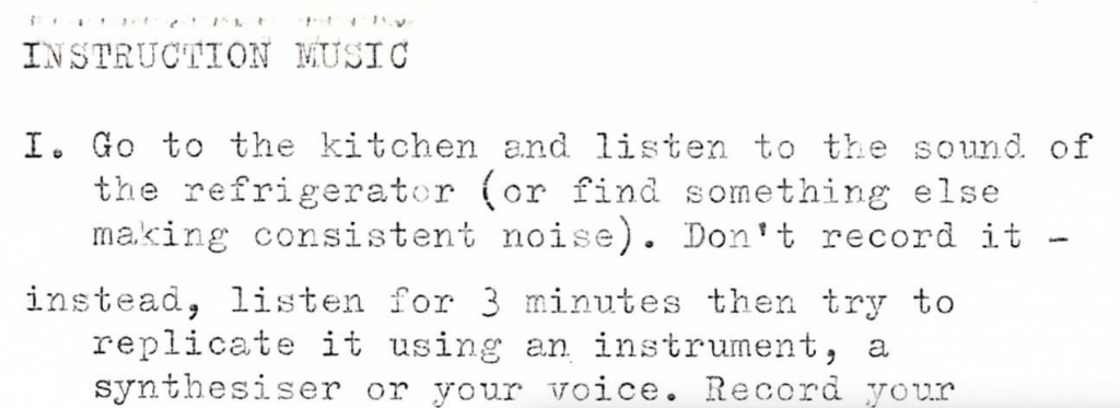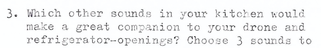 The very first line read, “Go to the kitchen and listen to the sound of the refrigerator…” — not exactly the most promising start. Our fridge was far too quiet to be useful, so I ended up turning to the freezer instead. After failing to synthesise its hum, I resorted to doing an impression of it, which turned out to be a blessing in disguise; that vocal imitation became the raw material for the melody.